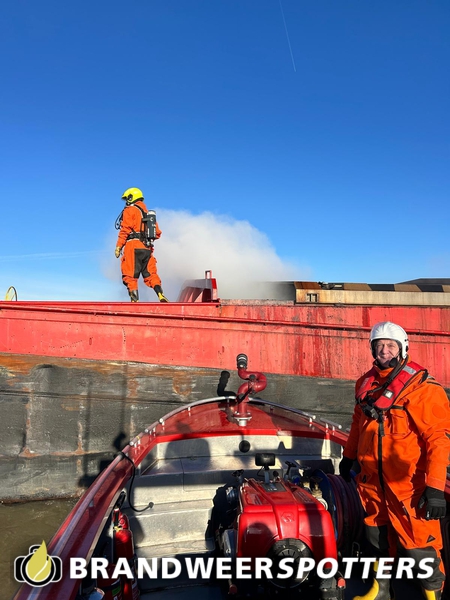 Schip in brand Amer L in Lage Zwaluwe