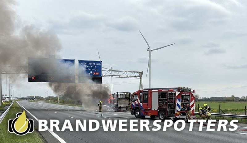 Vrachtwagen in brand A16 rechts thv hectometerpaal 53,0 nabij Langeweg